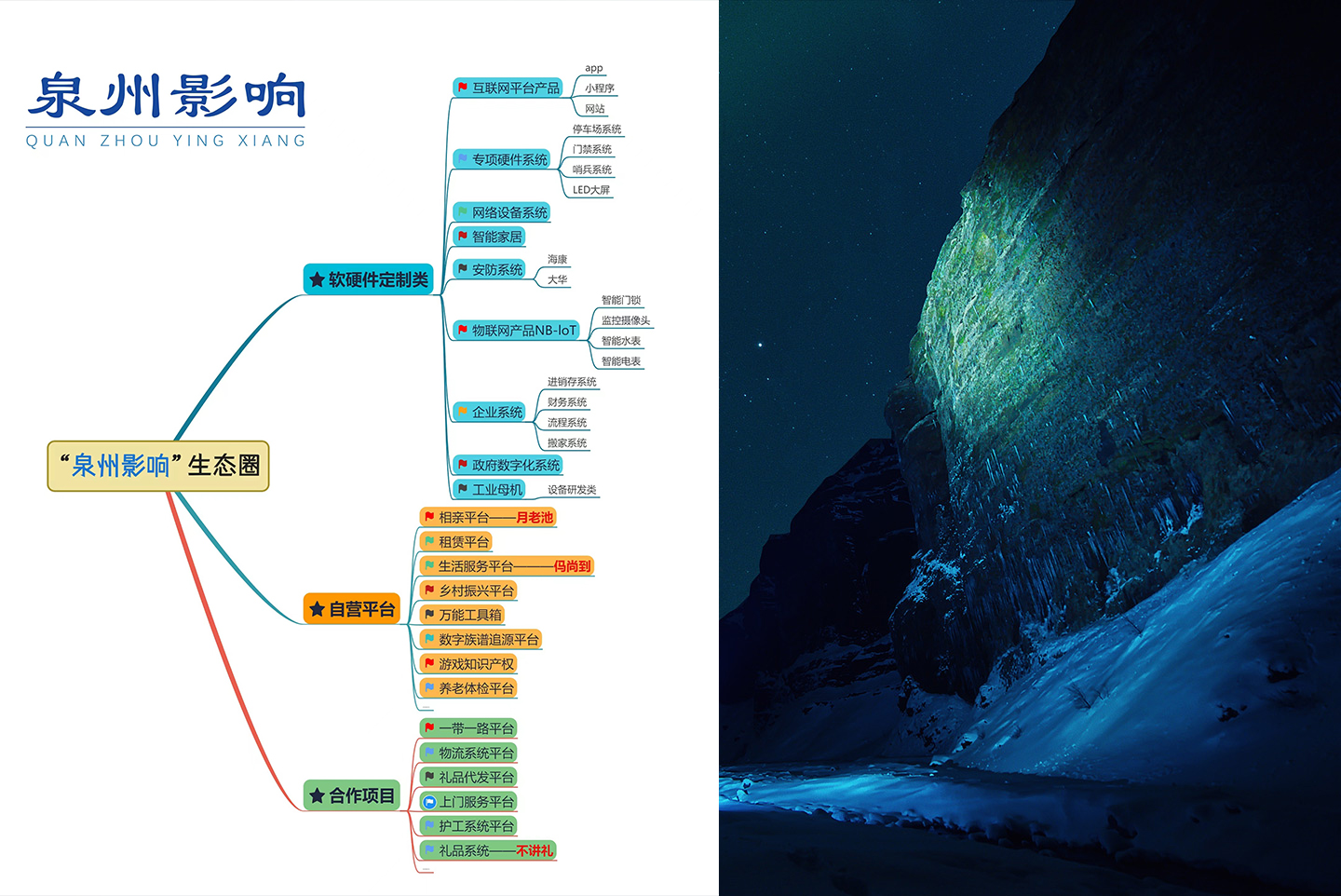 泉州影响简介 泉州影响主营三大板块《软件硬件开发-平台运营-项目合作》三位一体。 始终坚持以软件技术为核心,通过软件与服务的结合,软件与制造的结合, 技术与行业能力的结合,提供行业解决方案。互联网平台产品(APP+小程序+网站) 物联网设备,智能家居,安防系统,ETC门禁系统,哨兵机器人,工业母机等等。 泉州影响注重品牌传播与管理,打造中国有影响力的web3.0时代综合服务商。